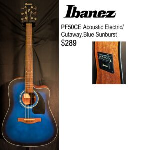 Ibanez PF50CE Cutaway Dreadnought Acoustic/Electric Guitar – Transparent Blue Sunburst