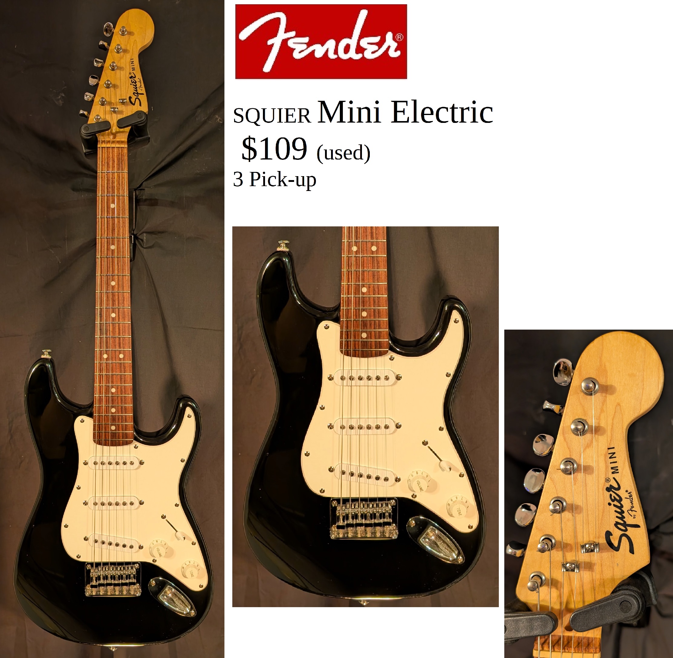 Fender Squier Mini Electric,3 pick-up 3/4 Size Strat body.Used