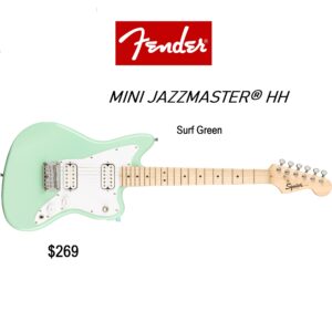 The Squier Mini Stratocaster® is the perfect companion for players seeking a reduced-size instrument with classic styling and familiar Fender® tone. Highlights include a thin and lightweight body, an easy-to-play “C”-shaped neck profile, a trio of Squier single-coil pickups with 5-way switching for sonic variety, and a hardtail bridge for solid tuning stability.