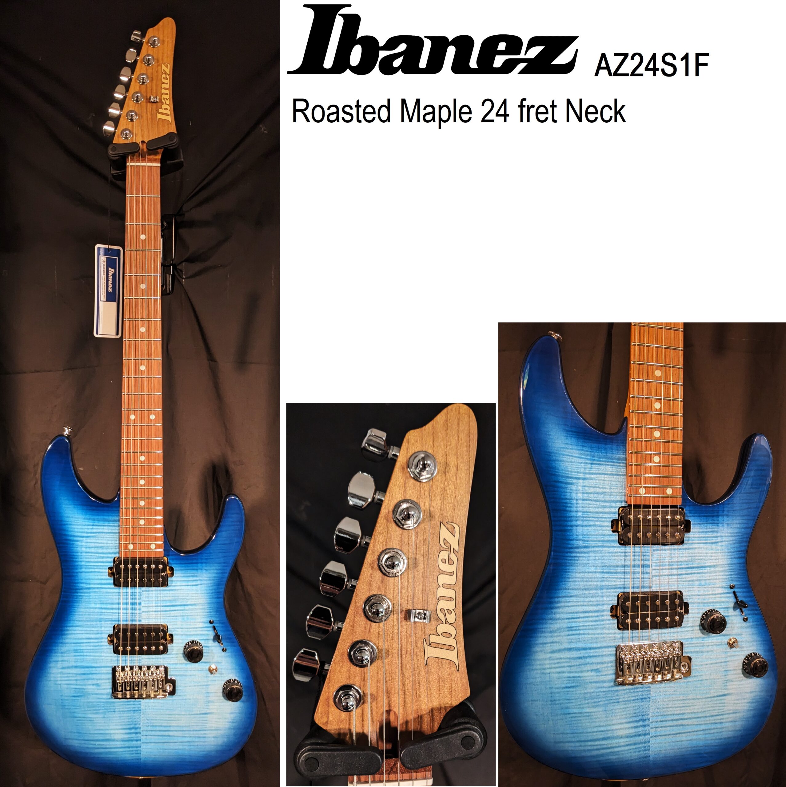 Roasted 24 fret Maple Neck,When constructing the AZ24S1F, Ibanez opted to arm this axe with two hard-hitting Modern Custom pickups. This dual-humbucker configuration delivers rock-ready heft and authority, with a traditional 5-way blade for switching between each pickup and LOCKING Tuning keys