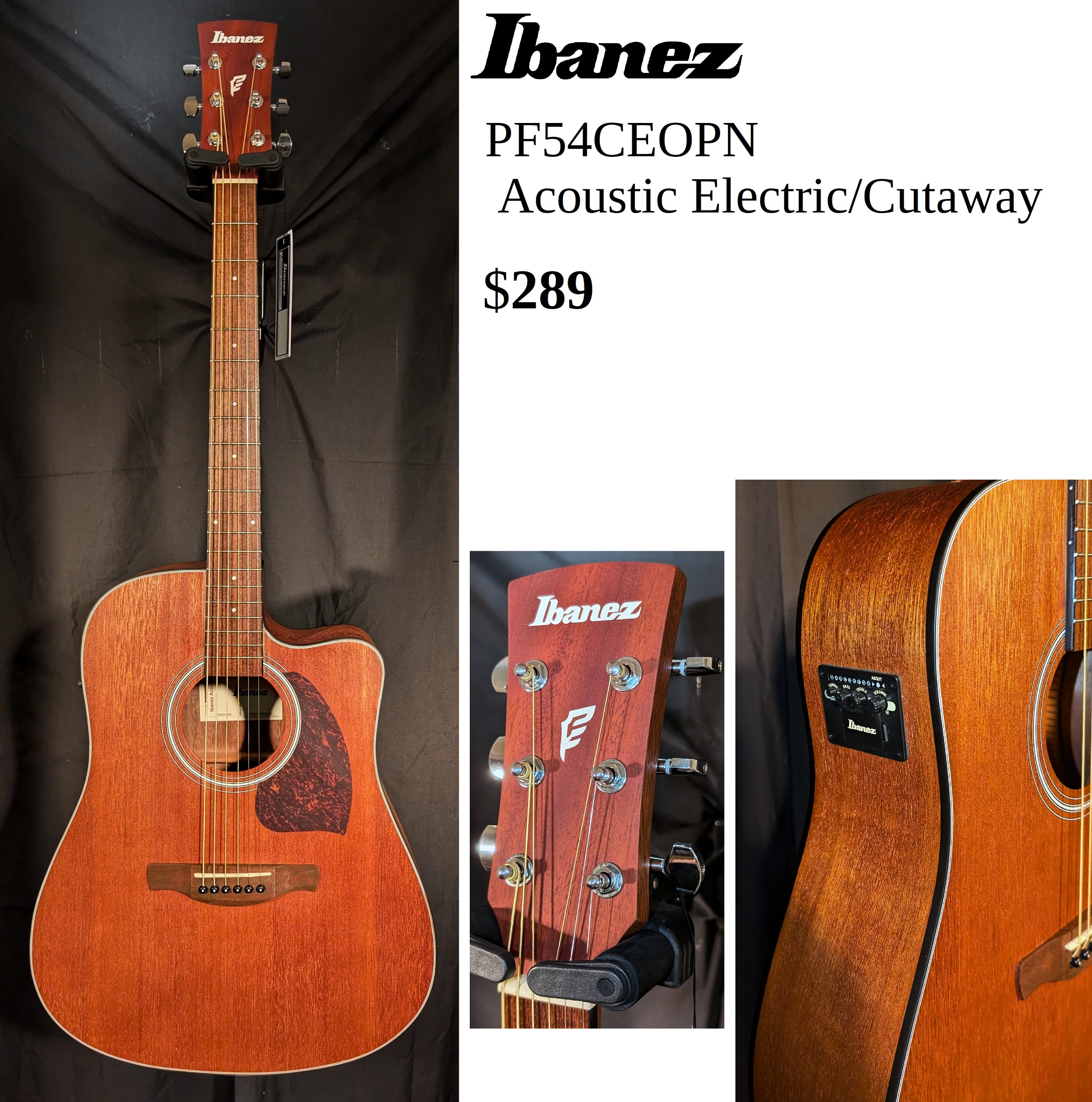 Ibanez PF54CEOPN   Acoustic Electric with Cutaway Dreadnought Body,Diecast tuners,With AEQ-2T preamp is specifically-designed to adjust the frequencies of a bass and a treble, and allows operation of the built-in tuner