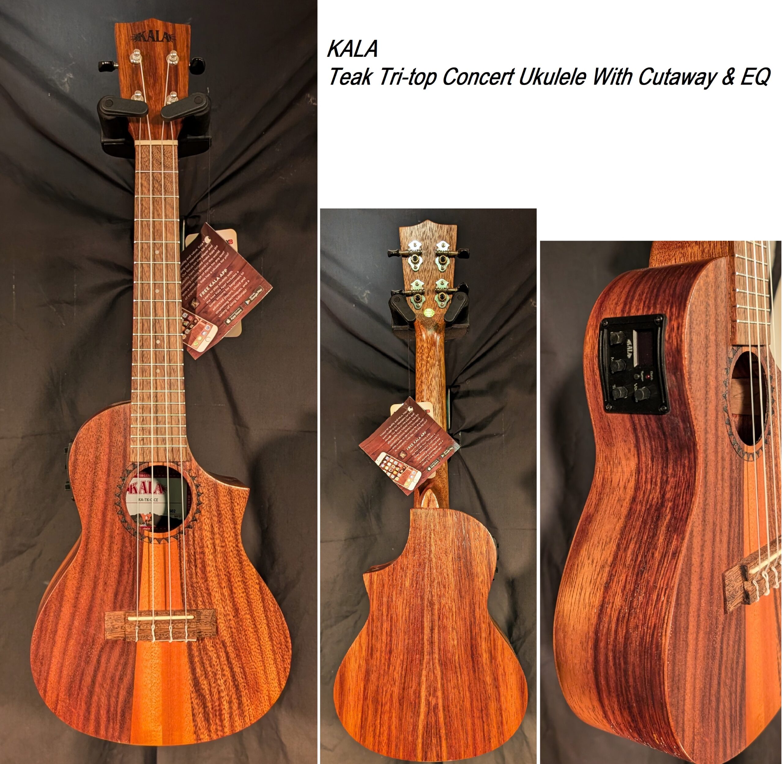 KALA Teak Tri-top Concert Ukulele With Cutaway & EQ