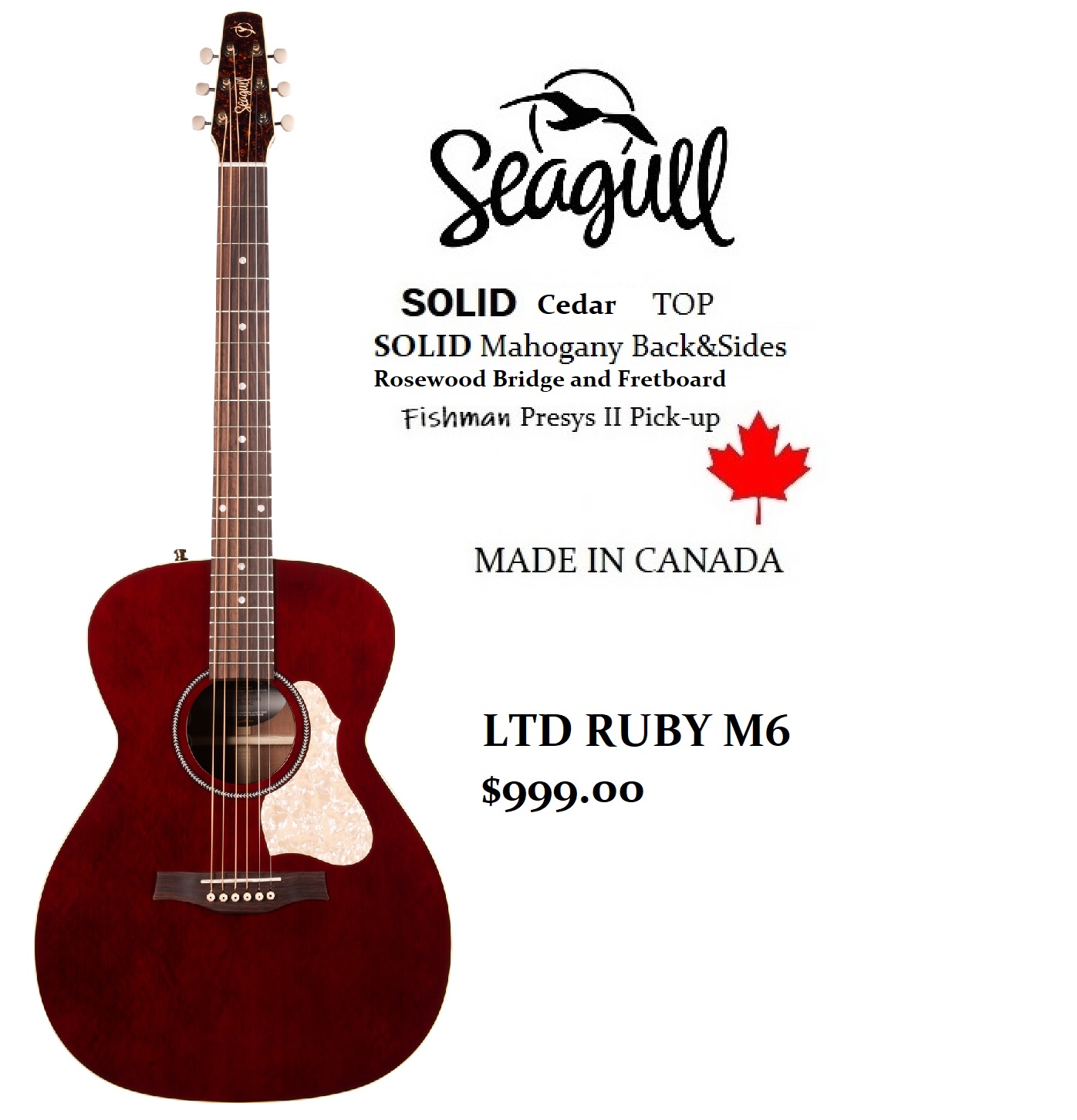 Seagull M6 LTD Ruby All Solid Wood Solid Cedar Top Solid Mahogany Back and Sides.Rosewood fretboard and Bridge.VT Pick-up System.MADE IN CANADA