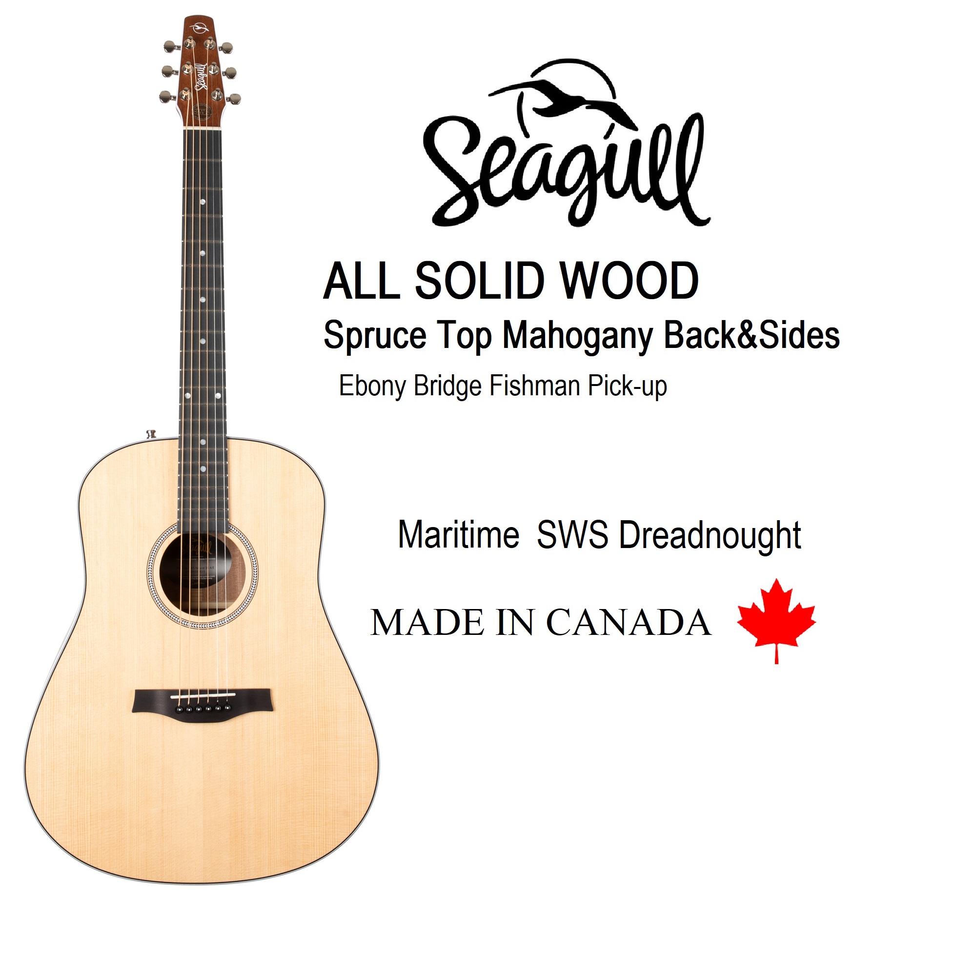 Seagull Maritime All Solid Wood Dreadnought,Solid Spruce Top,Solid Mahogany Back&Sides,Ebony Bridge,Fishman Pick-up System